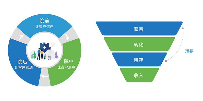 现代民营医疗机构通过成立专门的客户服务及运营中心,建立起属于自己的私域流量,使医院的战略中心从关注“医疗服务”向“关注客户”转变,通过HCRM平台对客户需求挖掘和精细化管理,提供具有针对性的医疗服务,可以长期有效的提高医院的就诊量。