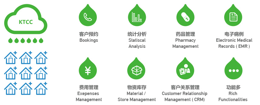平台提供的服务内容包括:基于医疗全业务流程的客户关系管理、支持医生医嘱和电子病历应用、支持费用、套餐、折扣管理、支持药房、药库及物资管理、支持会员、积分管理、支持集团化连锁管理等私立高端诊所业务的全部环节。