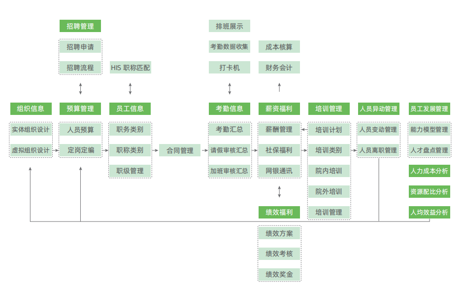 ● 前端排班与后端薪酬、绩效打通;薪酬与业务、薪酬与财务信息共享